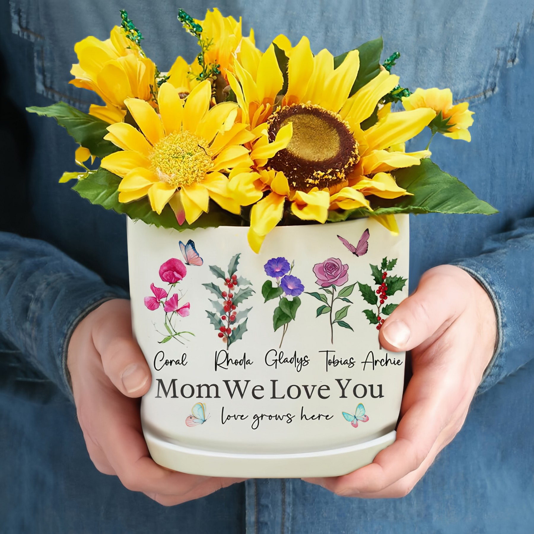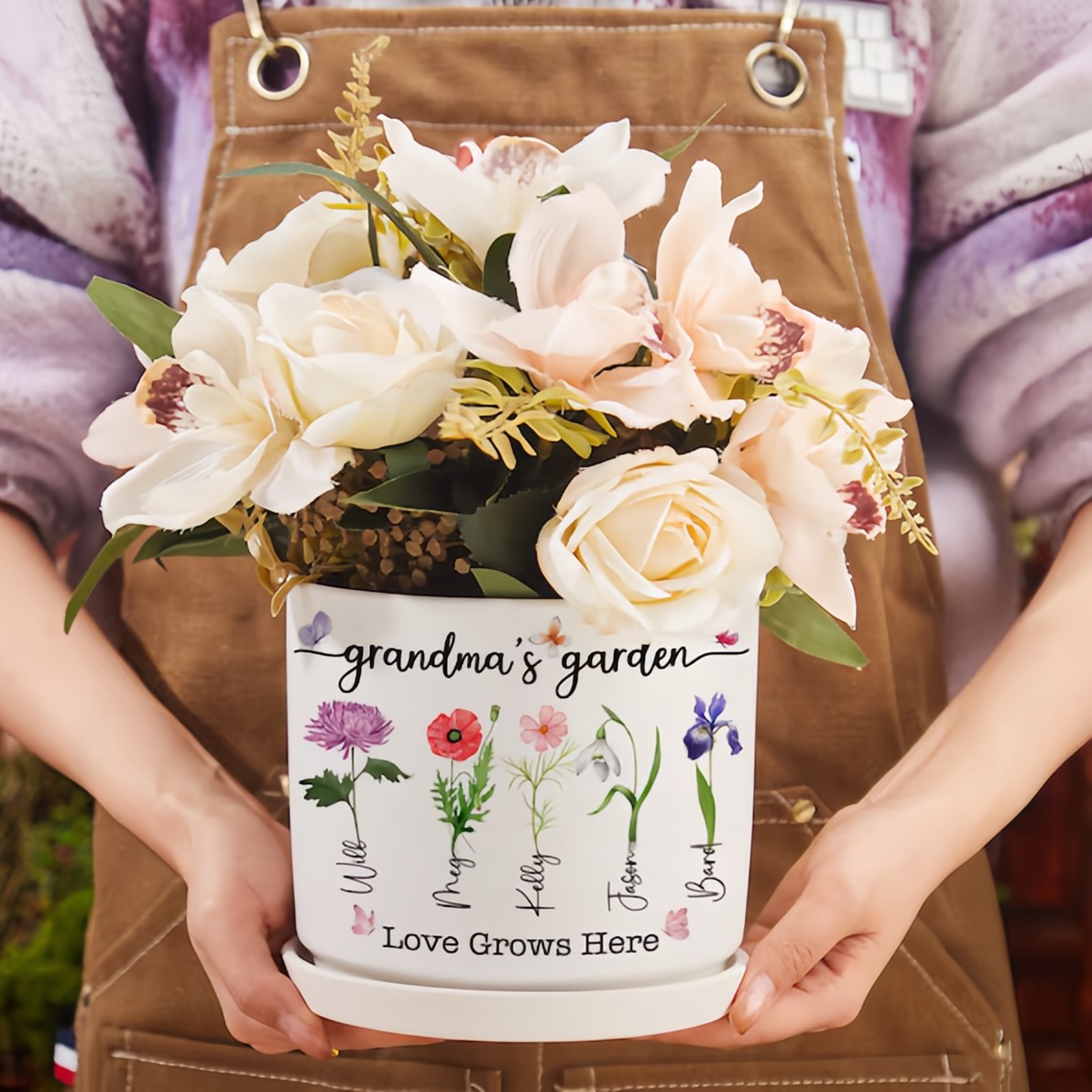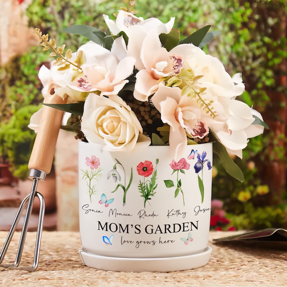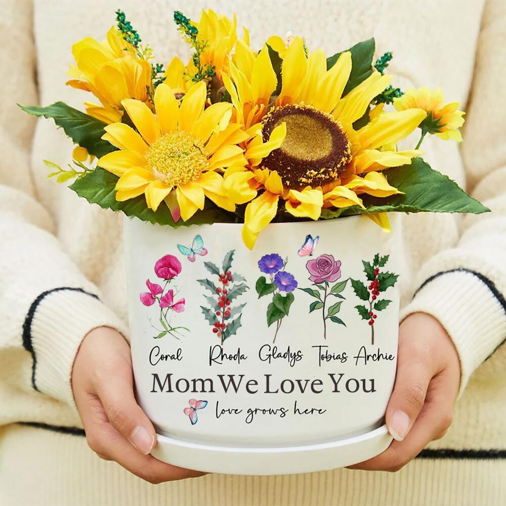 Personalized Mama's Garden Birth Flower Pots With Kids Name and Birth Flower Ideal Gifts for Mother's Day