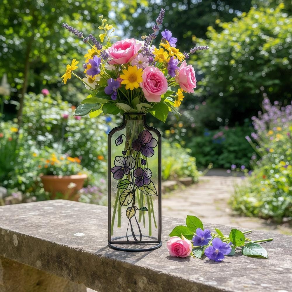 Custom Birth Flower Stained Glass Vase