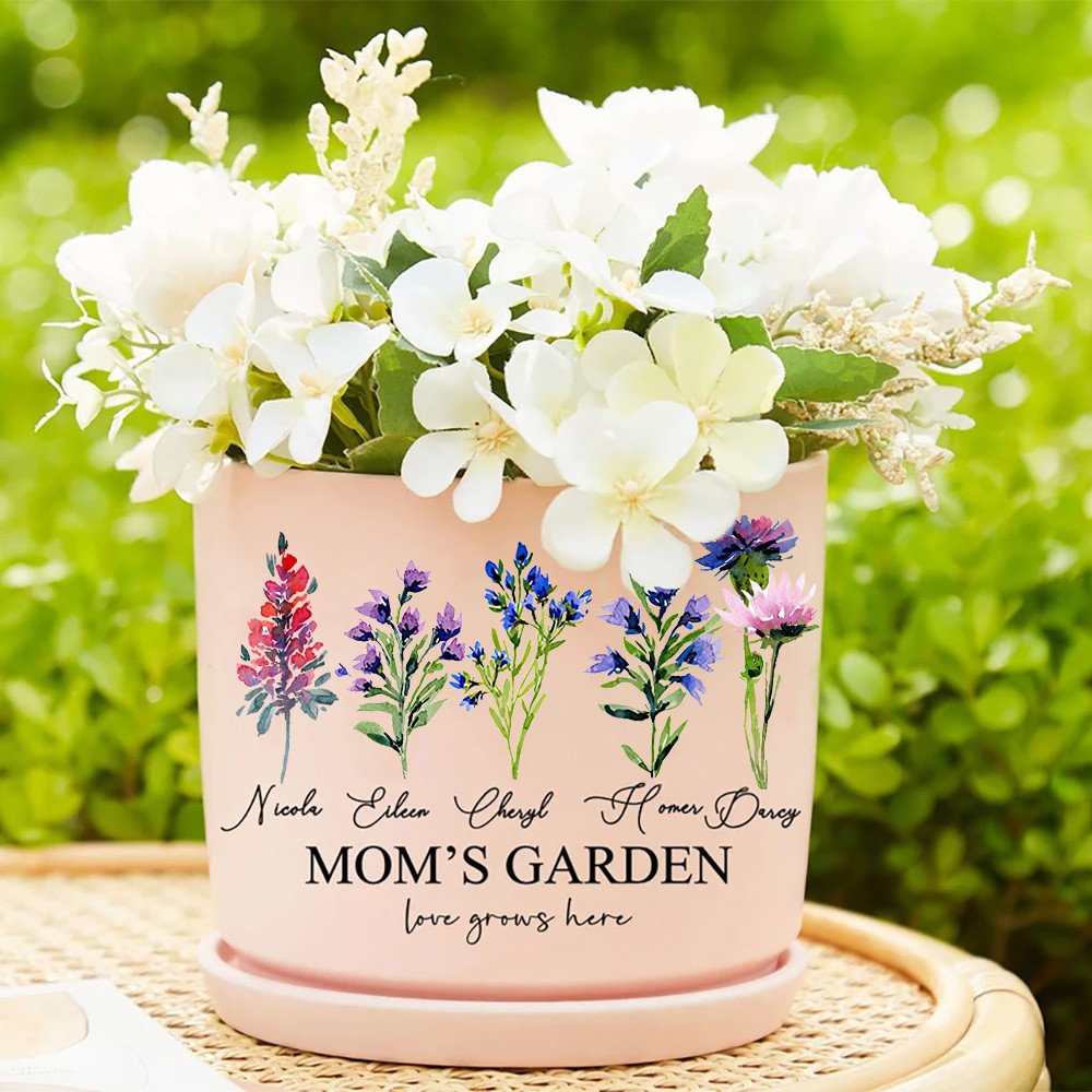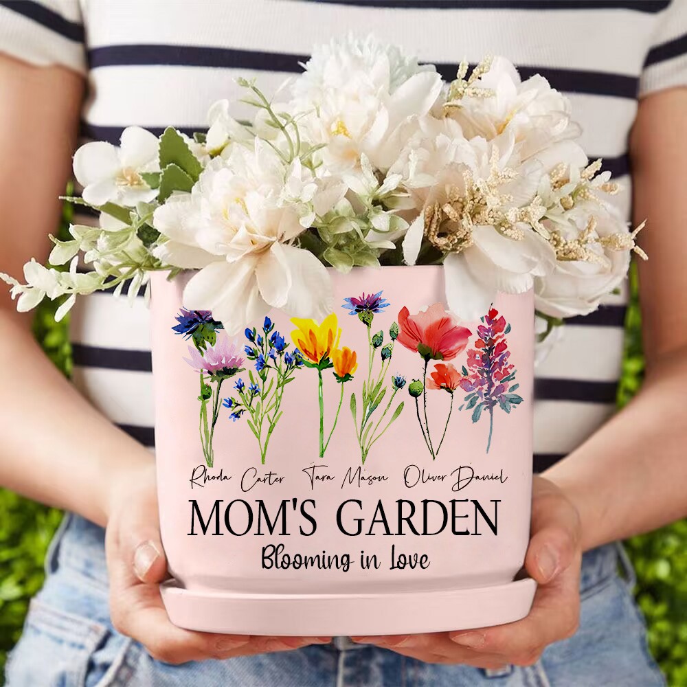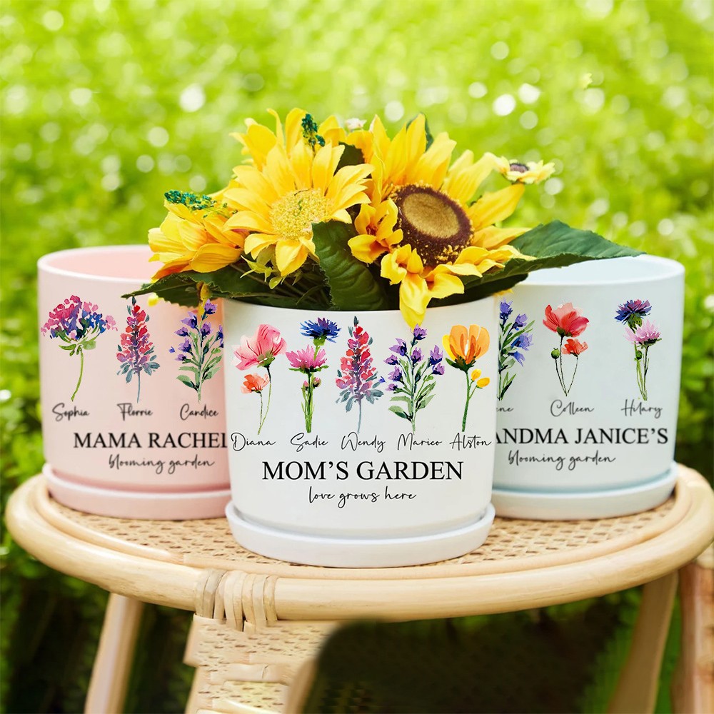 Big Custom Birth Month Flower Plant Pot Grandma's Garden Plant Pot Mother's Day Gift