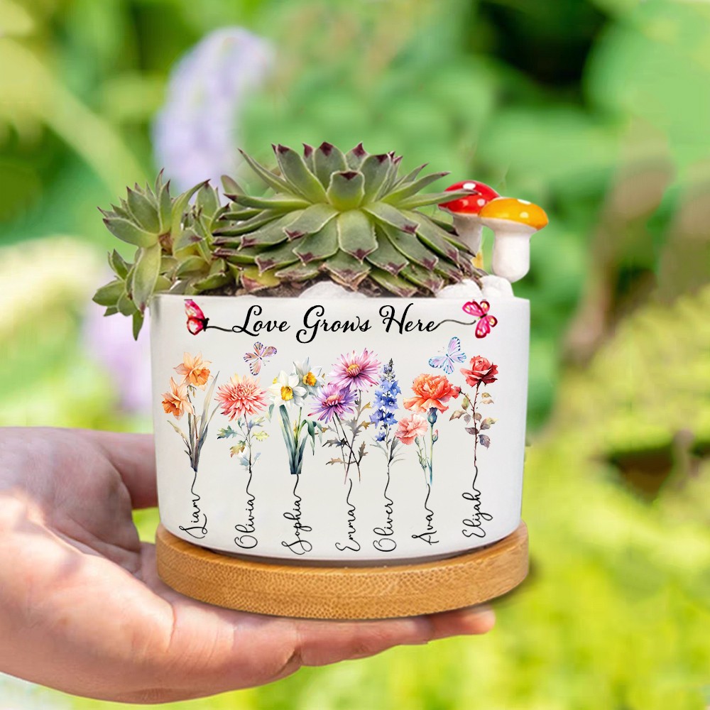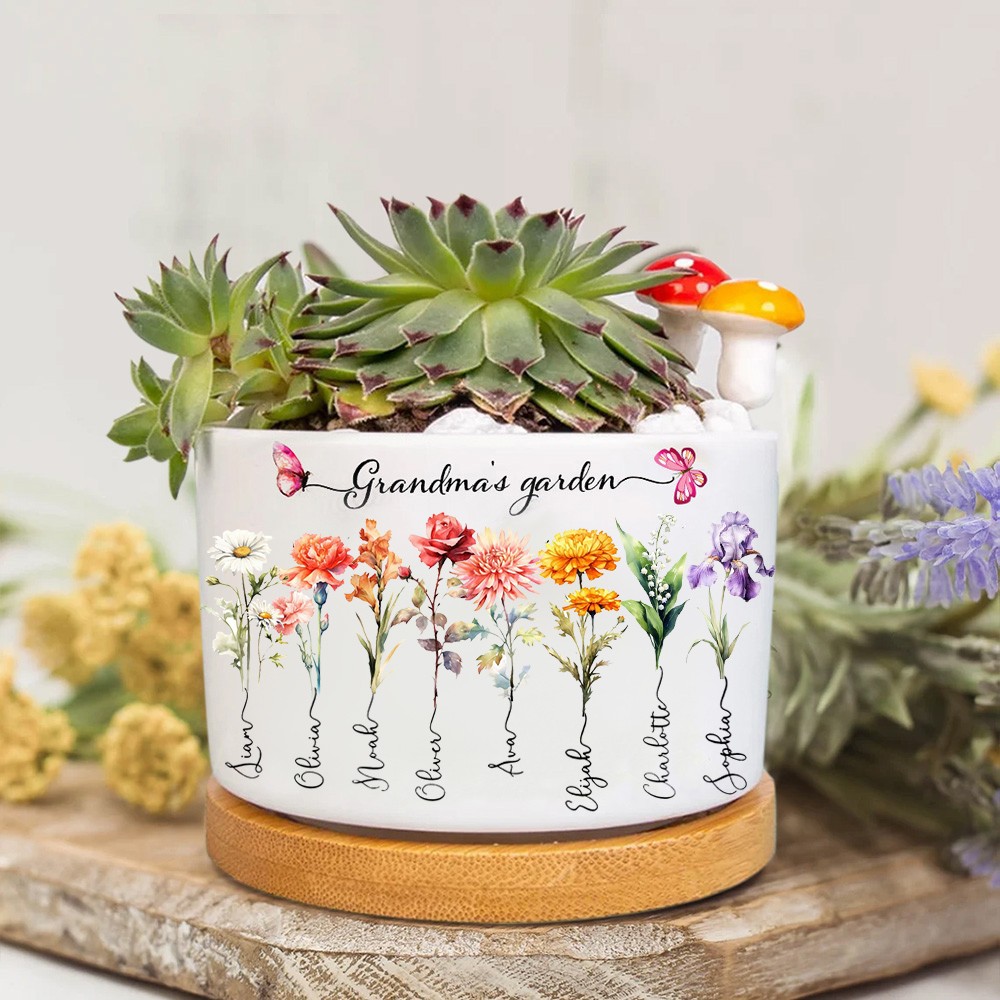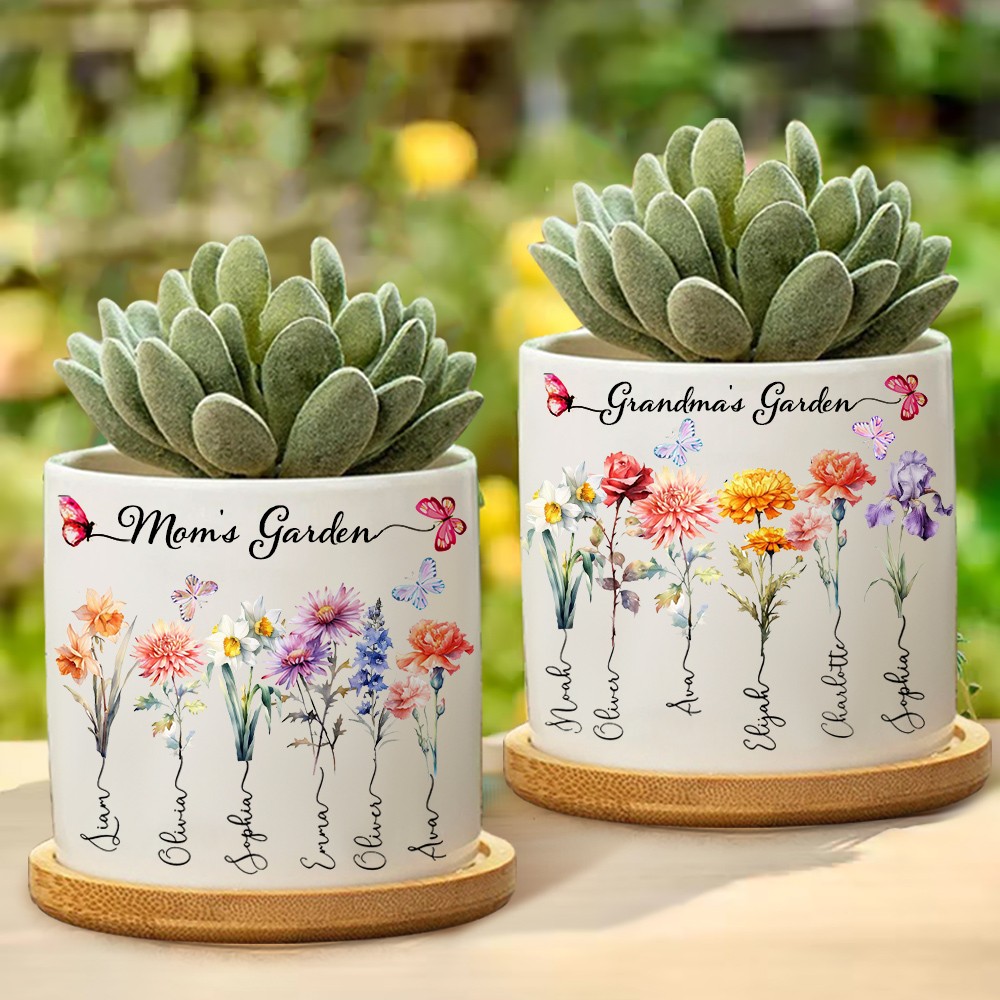 Custom Birth Month Flower Plant Pot Grandma's Garden Plant Pot Mother's Day Gift