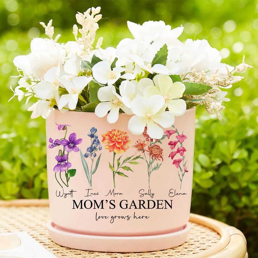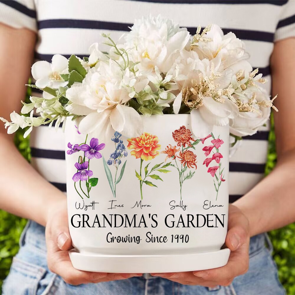 Big Custom Birth Month Flower Plant Pot Grandma's Garden Plant Pot Mother's Day Gift