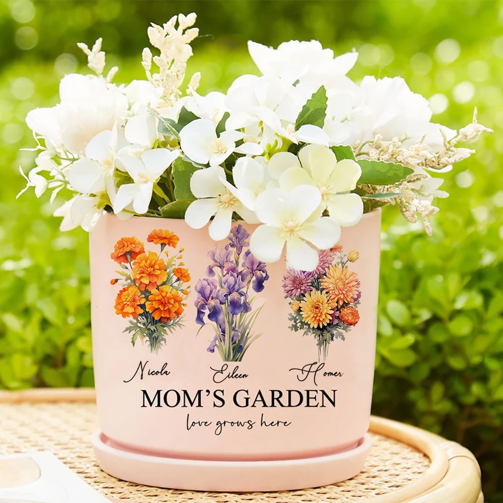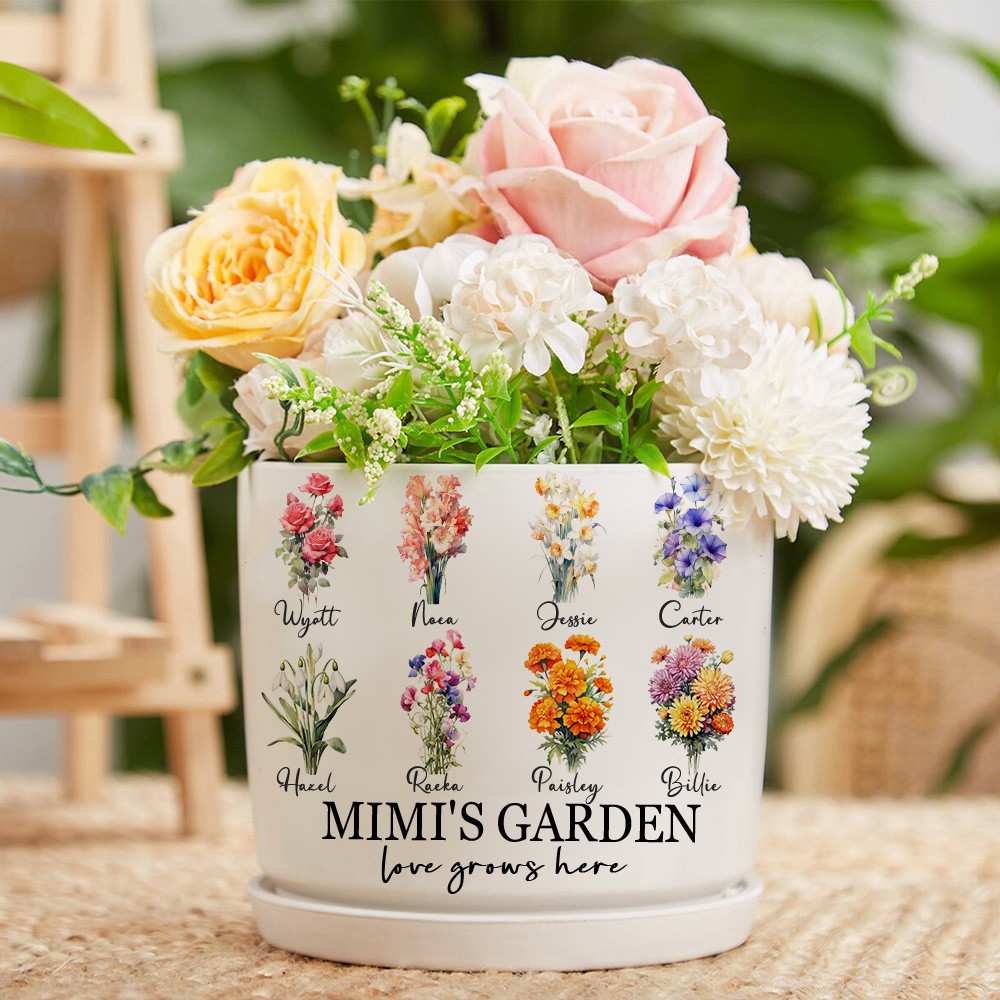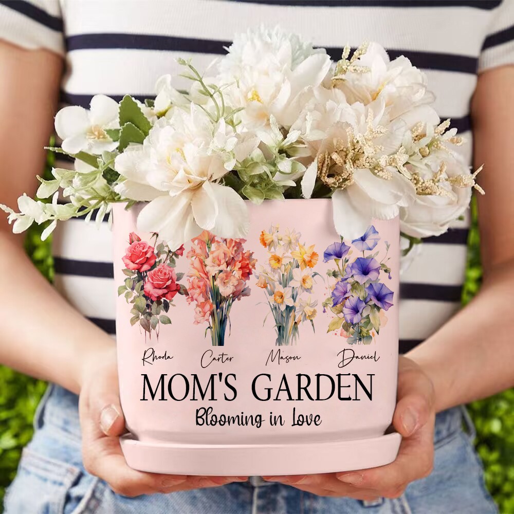 Big Custom Birth Month Flower Plant Pot Grandma's Garden Plant Pot Mother's Day Gift