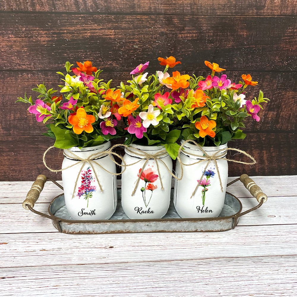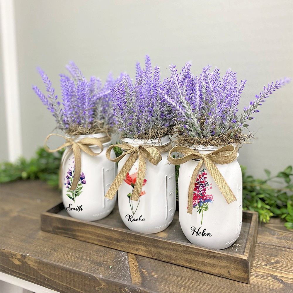 Personalized Birth Flower Mason Jars Mother's Day Gift