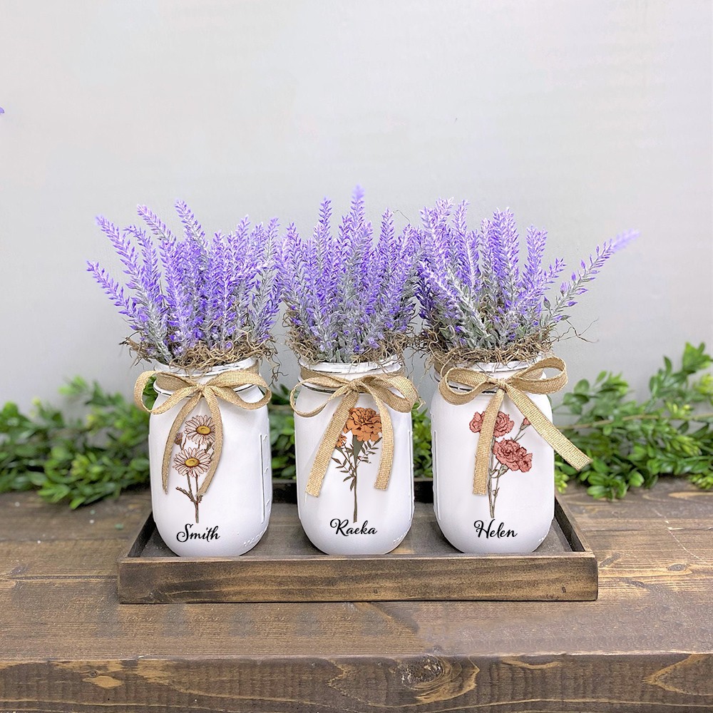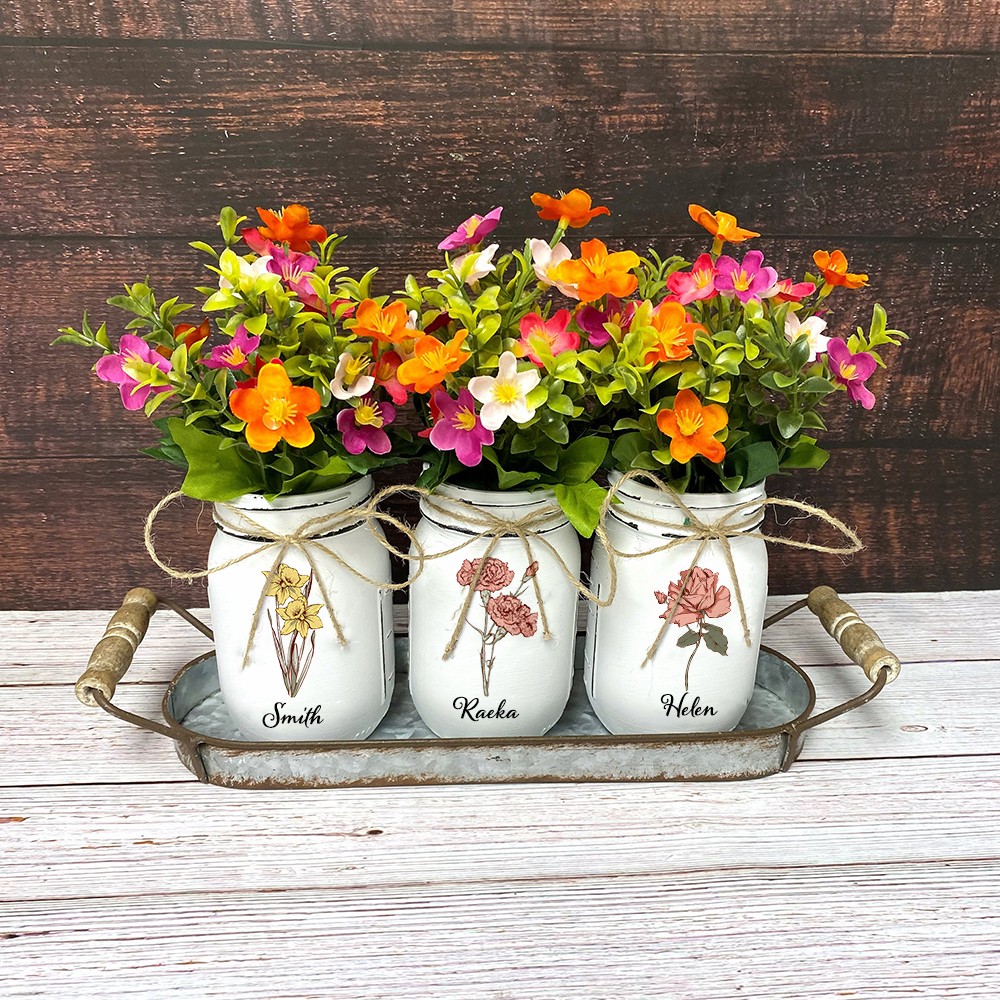 Personalized Birth Flower Mason Jars Mother's Day Gift