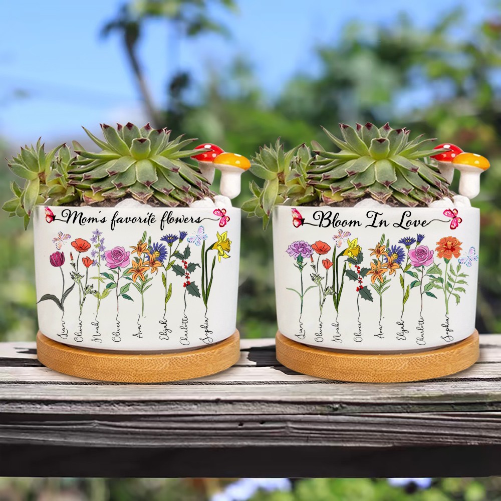 Custom Birth Month Flower Plant Pot Grandma's Garden Plant Pot