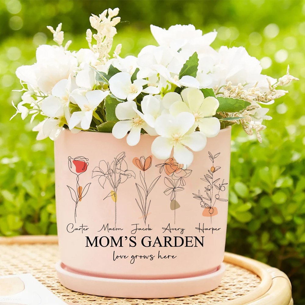 Big Custom Birth Month Flower Plant Pot Grandma's Garden Plant Pot Mother's Day Gift