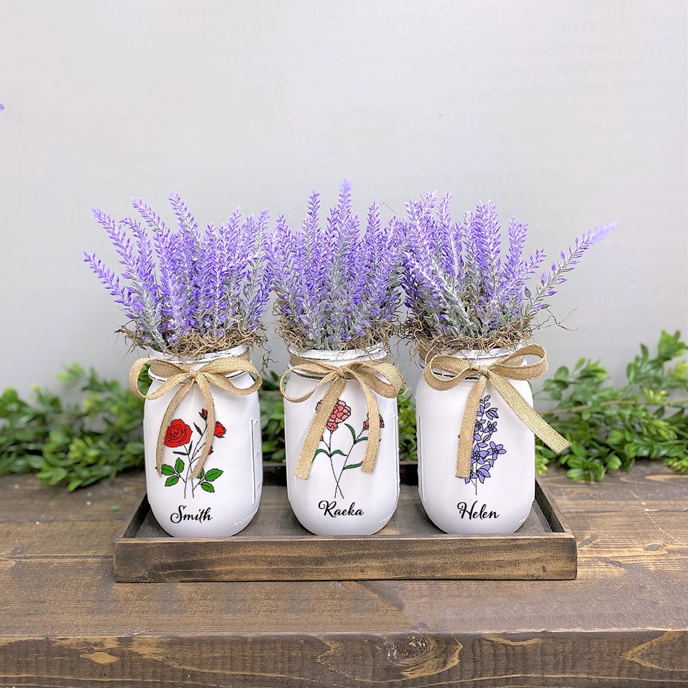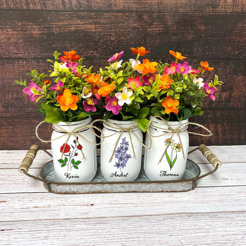 Personalized Birth Flower Mason Jars Mother's Day Gift