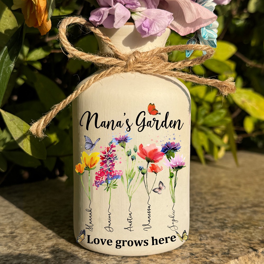 Custom Family Garden Birth Flower Vase With Grandchildren Name For Mother's Day Gift