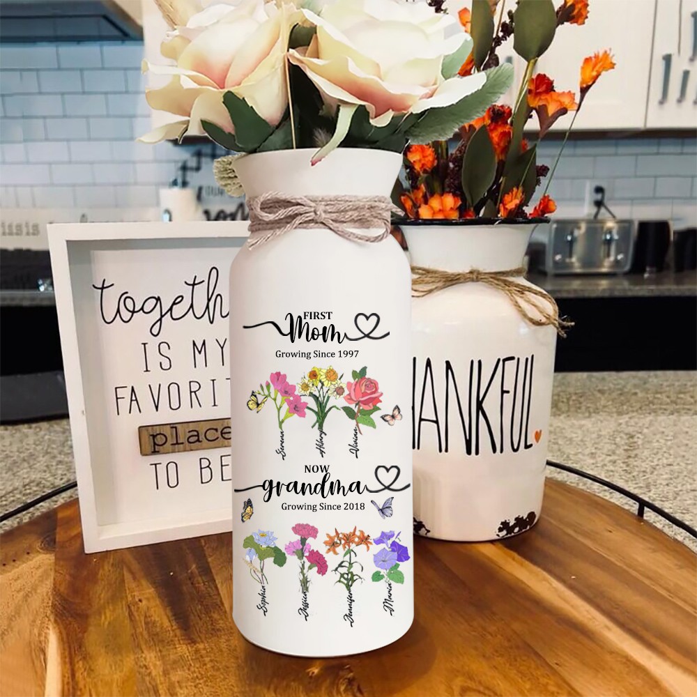 Custom Mom and Grandma Two Generation Garden Vase Birth Flower Plant Vase With Names Mother's Day Gifts Heartful Gift for Mom Grandma