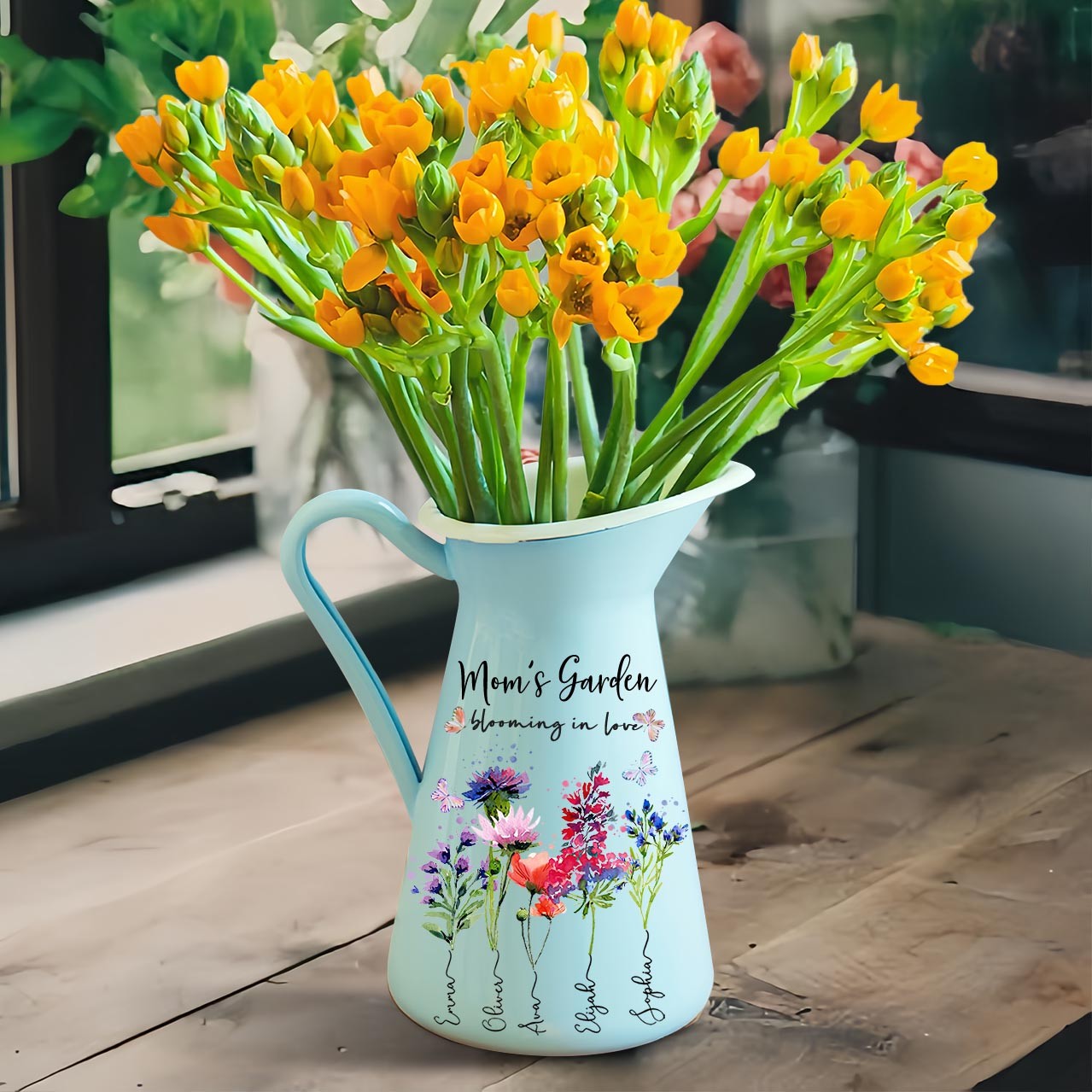 Custom Mom's Garden Birth Flower Vase With Kids Name and Birth Flower Ideal Gifts for Mother's Day