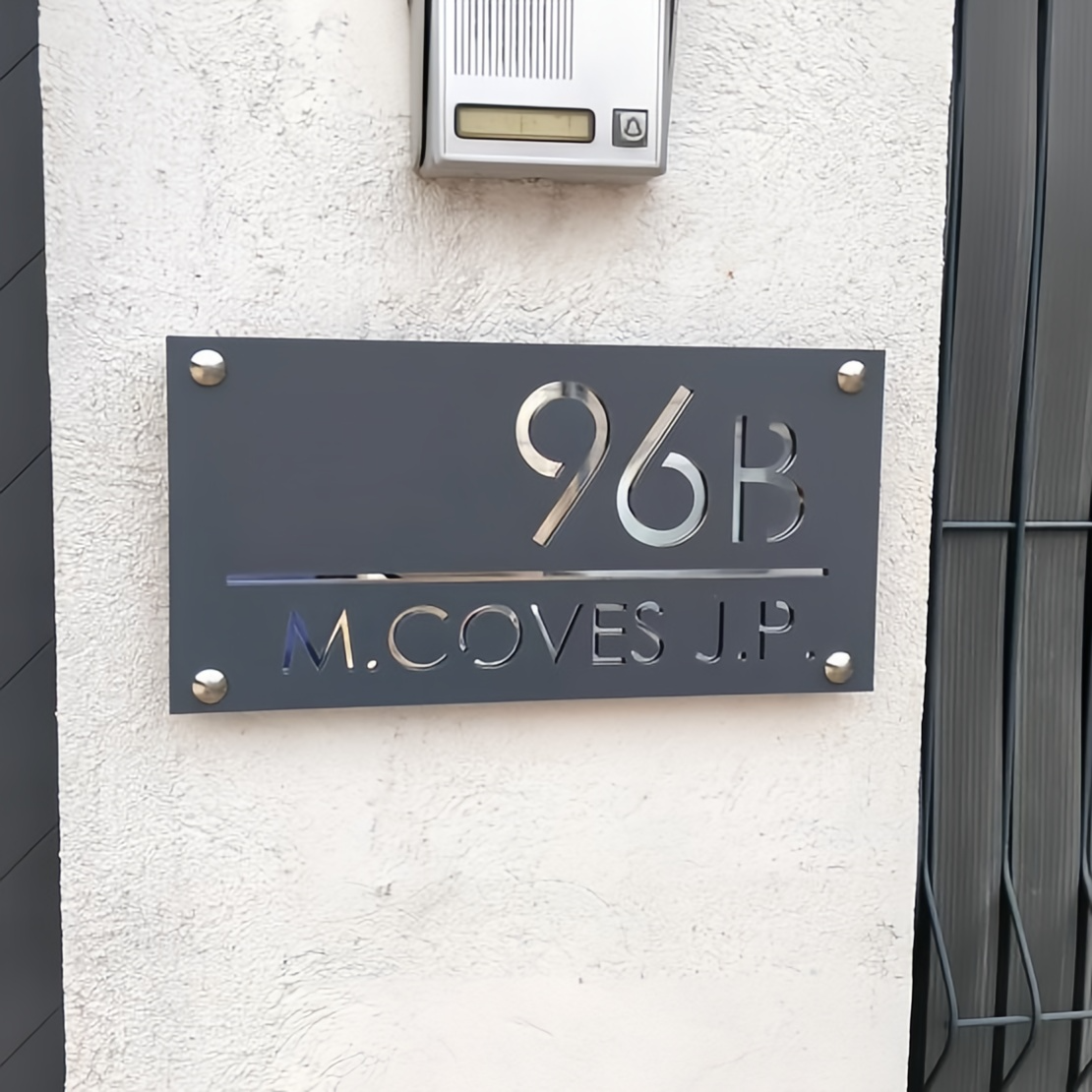 This sign is 280mm x 140mm It has a Matt Gray (Anthracite) front section and a Silver Mirror back section and 4x stainless steel fittings. It comes complete with a fitting kit and wall template.