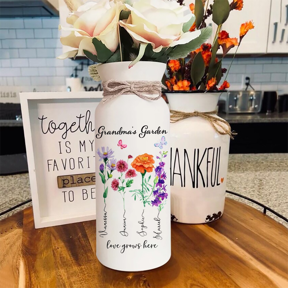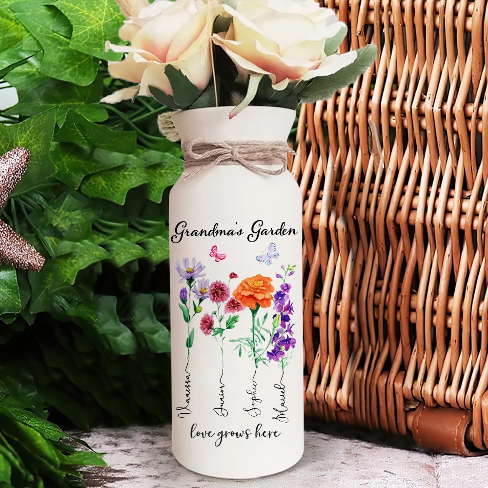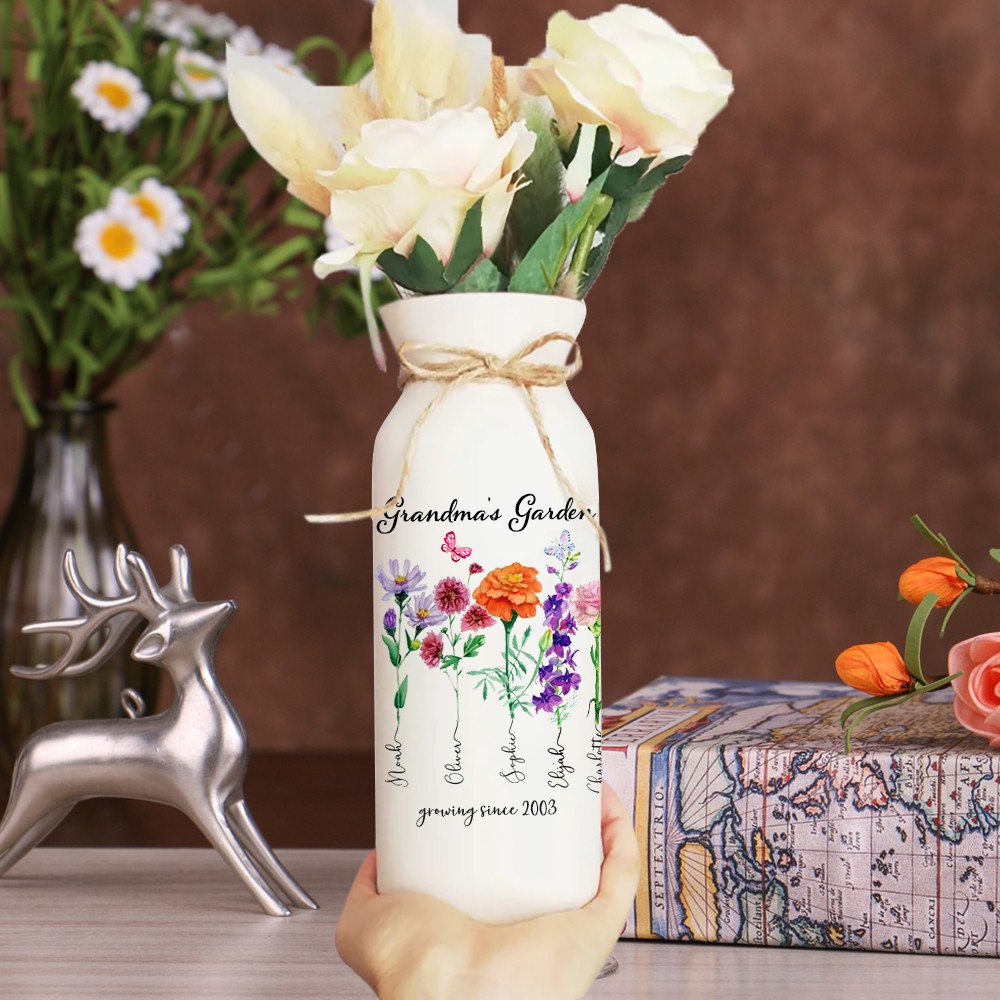 HOT SALE❗❗Custom Grandma's Garden Birth Flower Vase With Grandkids Name and Birth Flower Ideal Gifts for Mother's Day