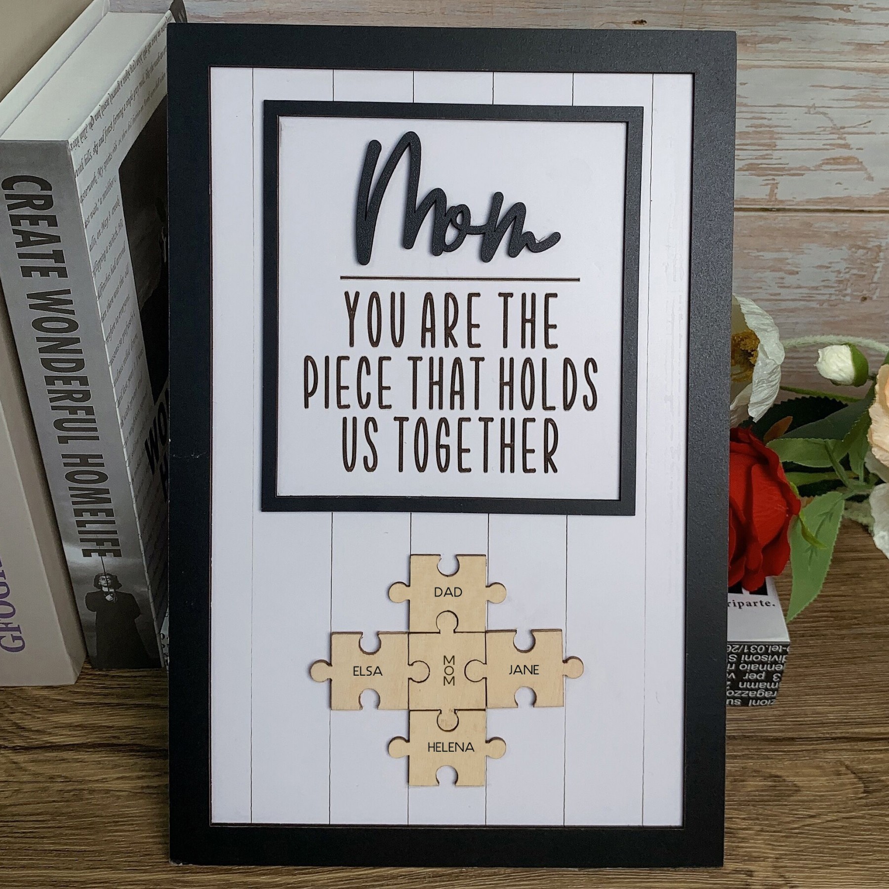Mom You Are The Piece That Holds Us Together Wooden Puzzle Piece Mother's Day Sign