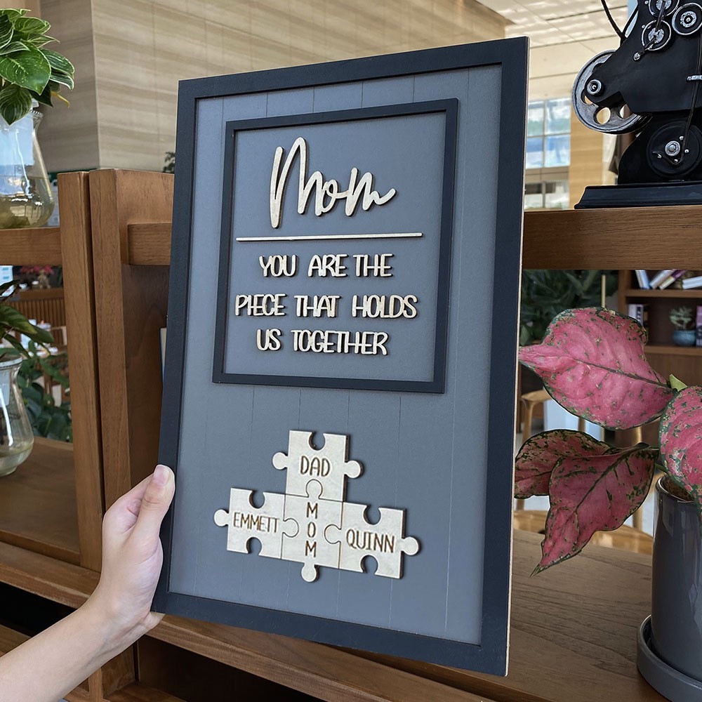Mom You Are The Piece That Holds Us Together Wooden Puzzle Piece Mother's Day Sign