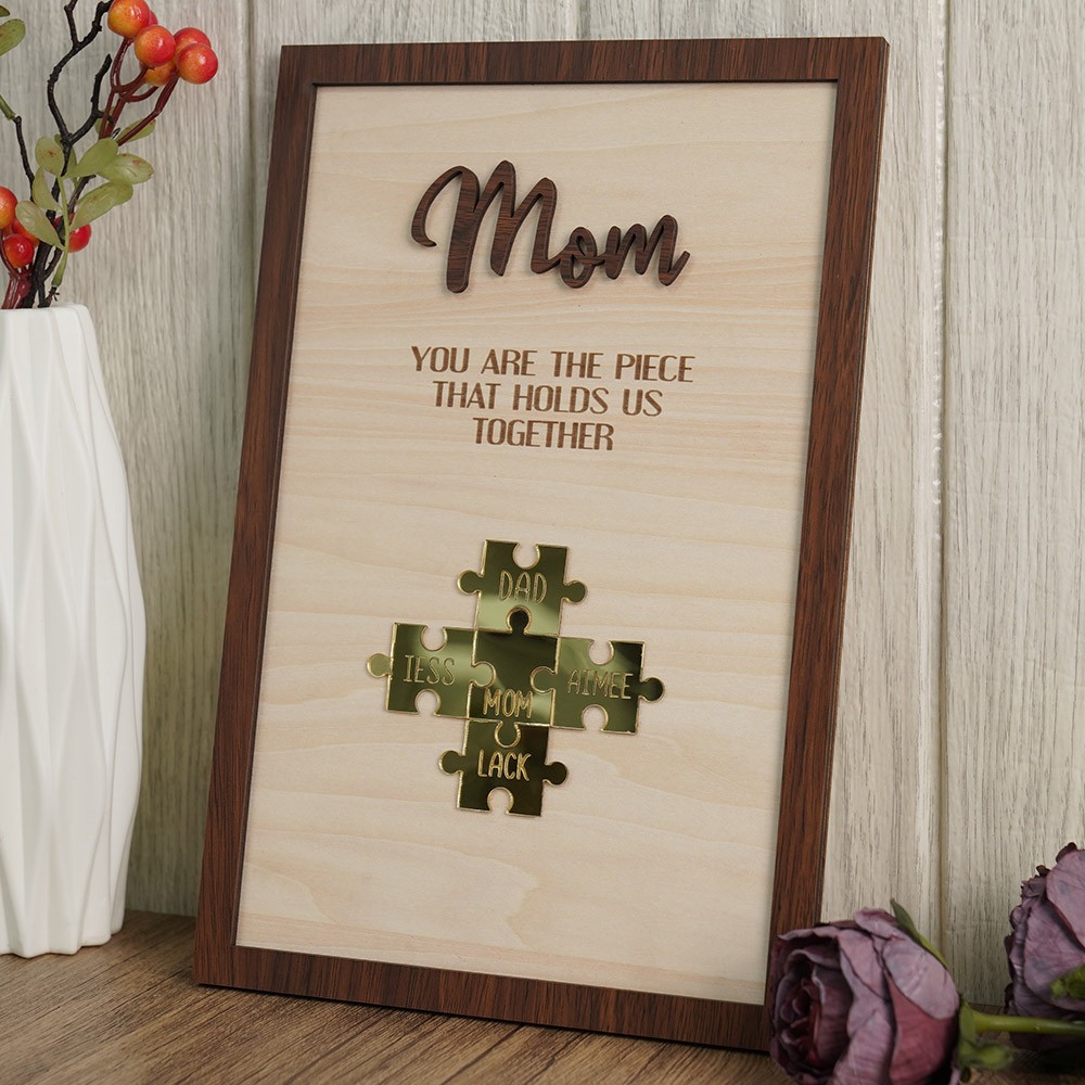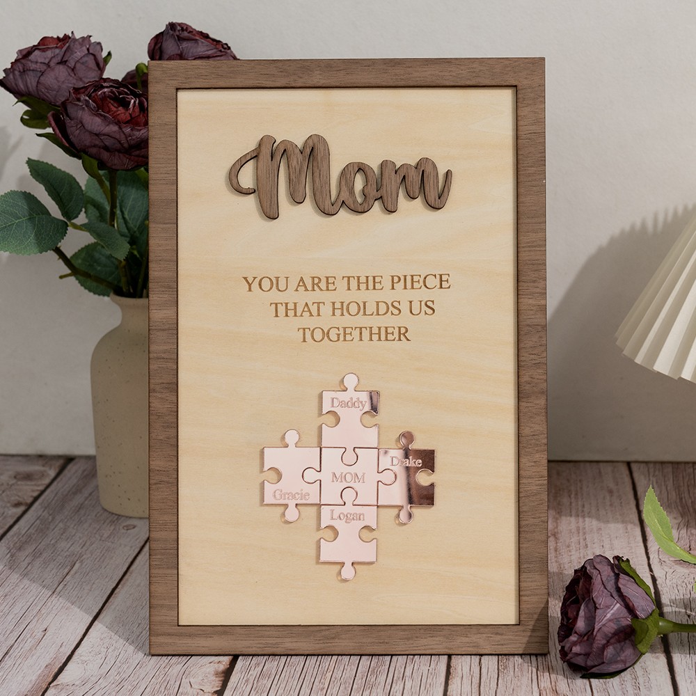 Mom You Are The Piece That Holds Us Together Wooden Puzzle Piece Mother's Day Sign