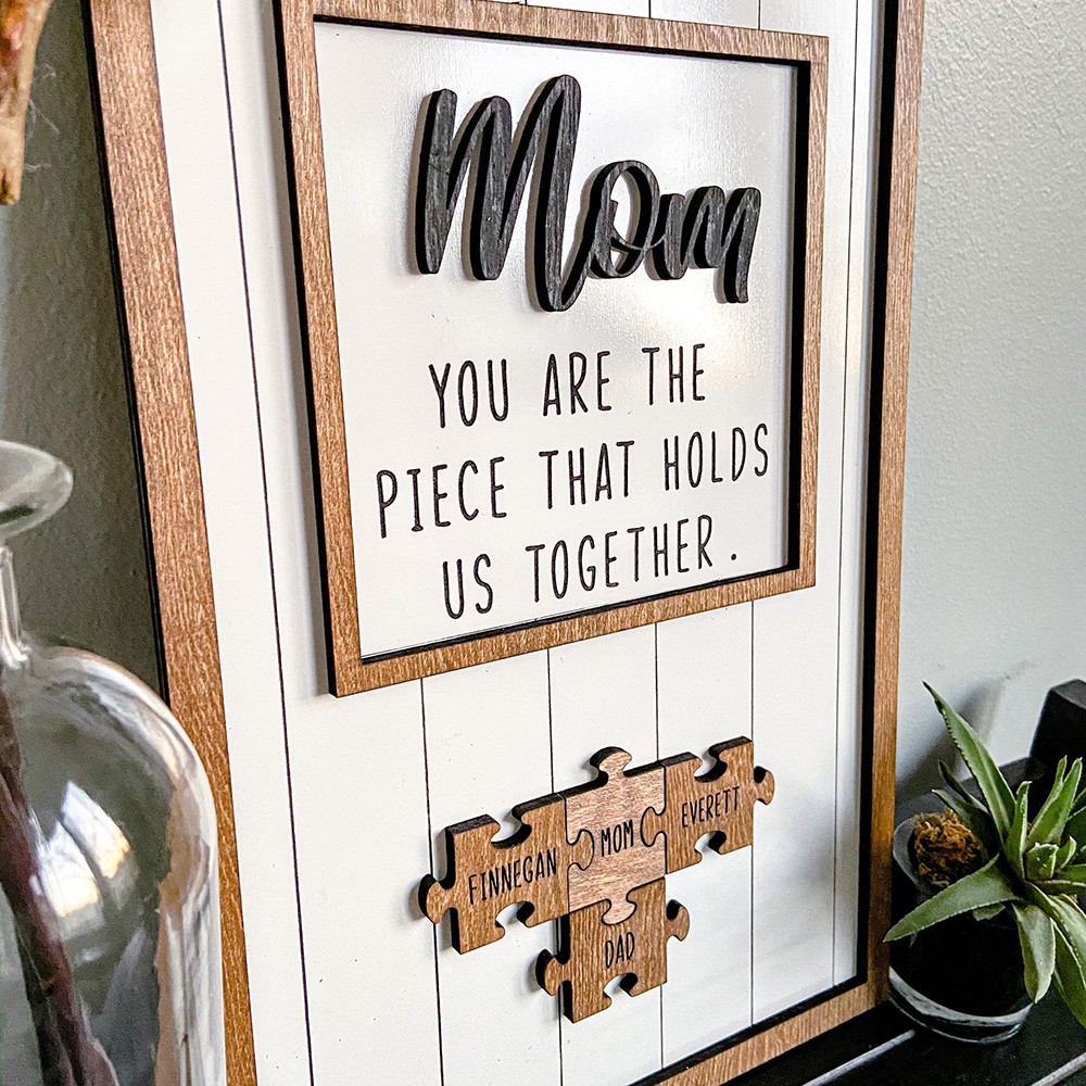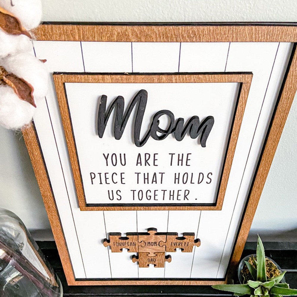 Mom You Are The Piece That Holds Us Together Wooden Puzzle Piece Mother's Day Sign