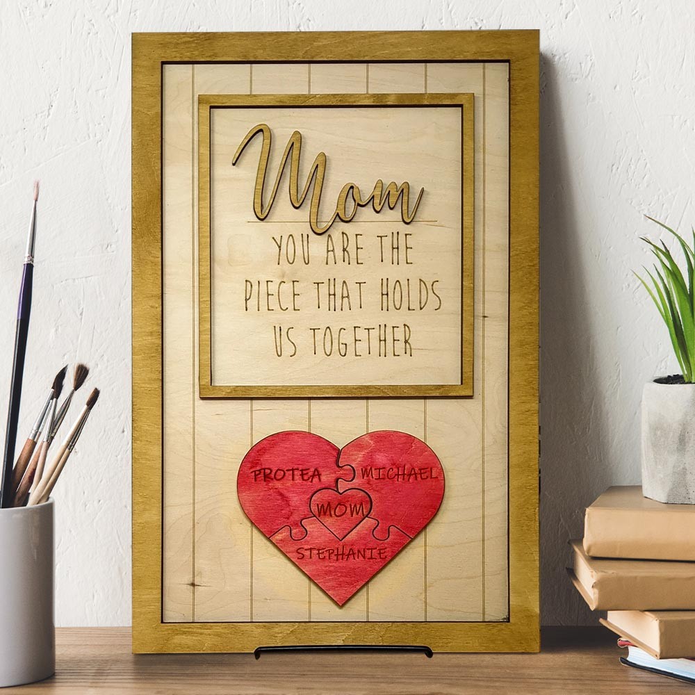 Mom You Are The Piece That Holds Us Together Wooden Puzzle Piece Mother's Day Sign