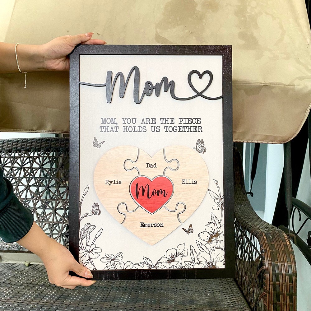 Mom You Are The Piece That Holds Us Together Wooden Puzzle Piece Mother's Day Sign