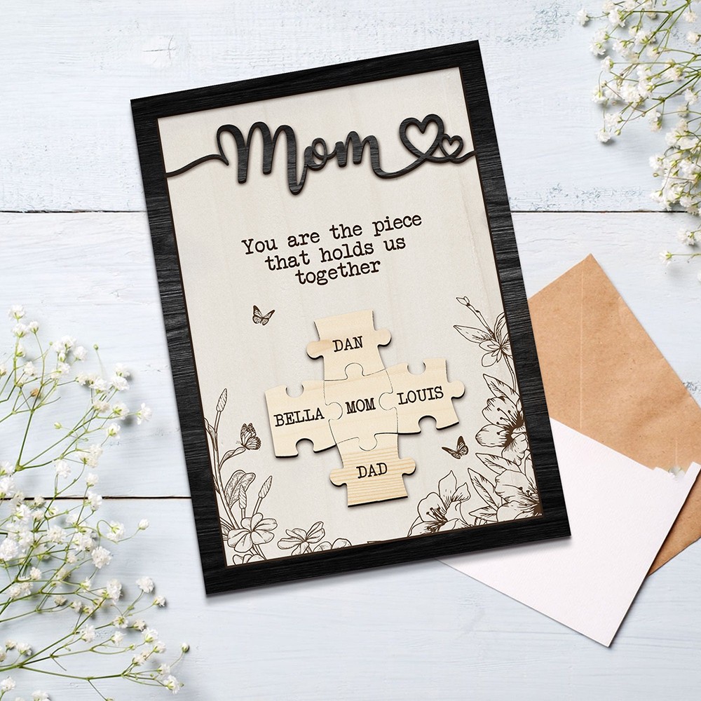 Mom You Are The Piece That Holds Us Together Wooden Puzzle Piece Mother's Day Sign
