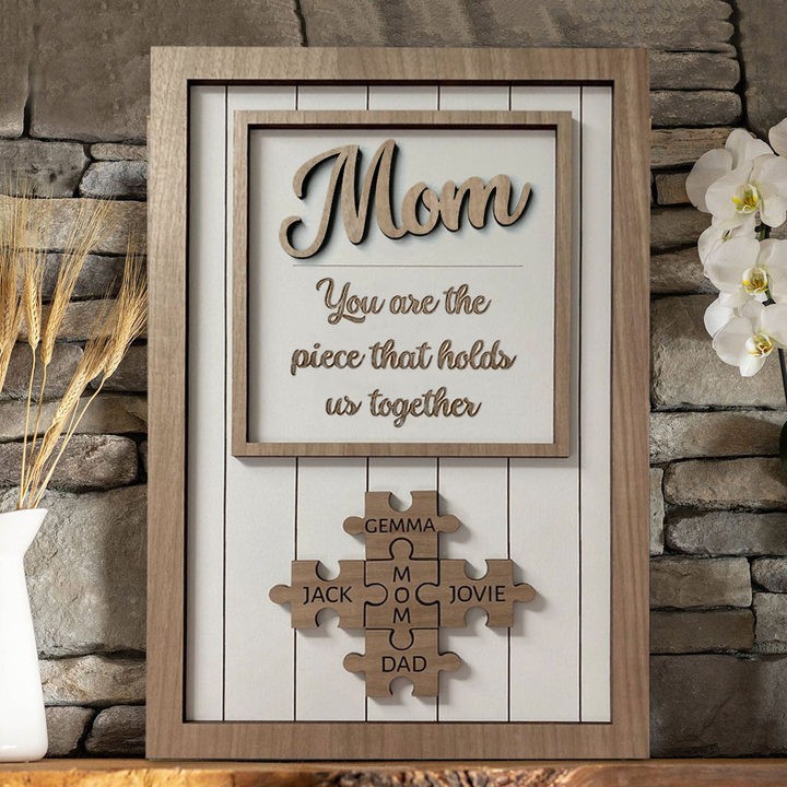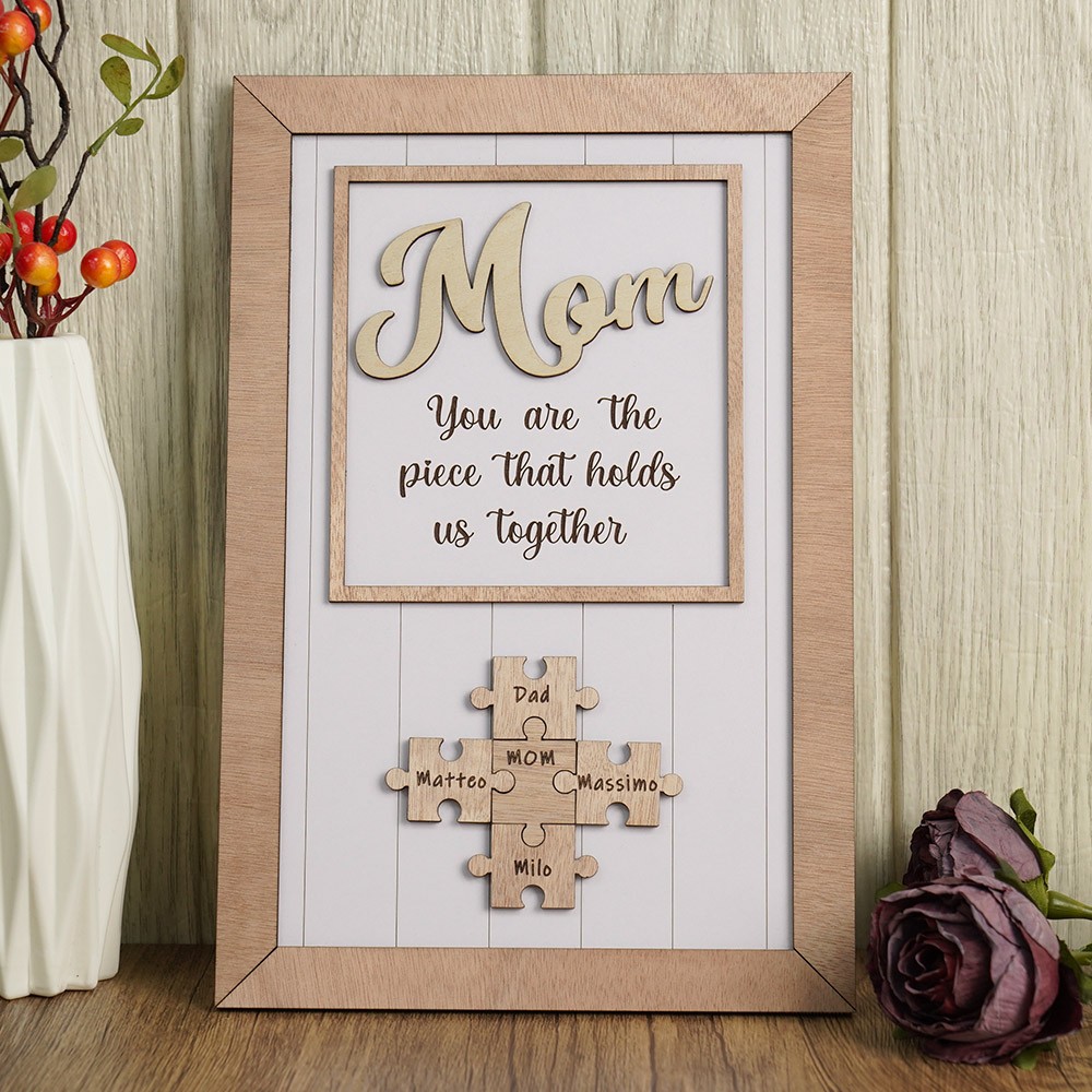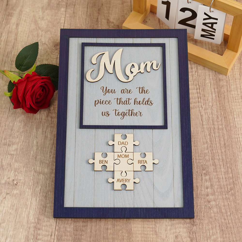 Mom You Are The Piece That Holds Us Together Wooden Puzzle Piece Mother's Day Sign