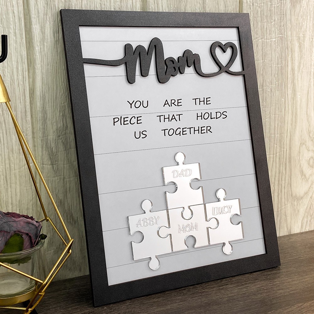 Mom You Are The Piece That Holds Us Together Wooden Puzzle Piece Mother's Day Sign