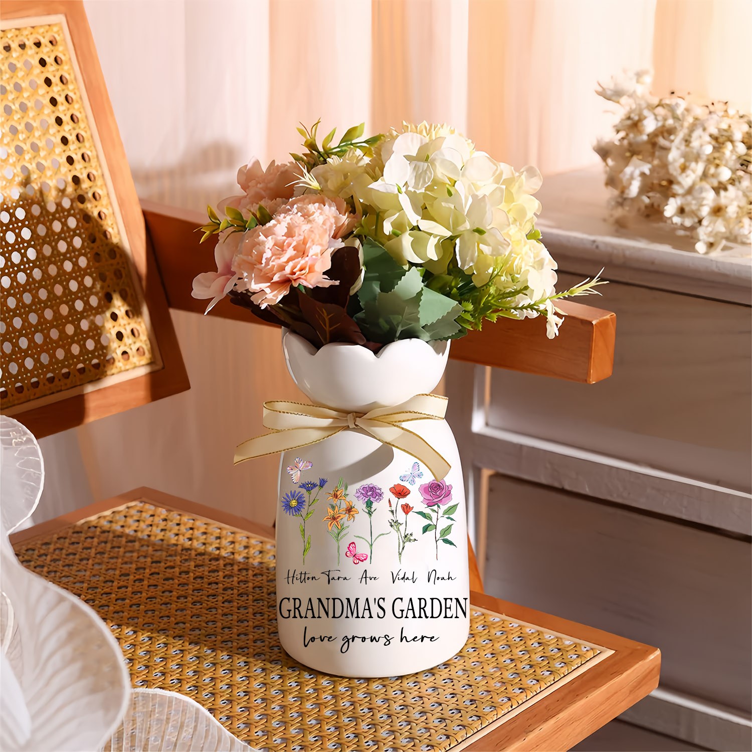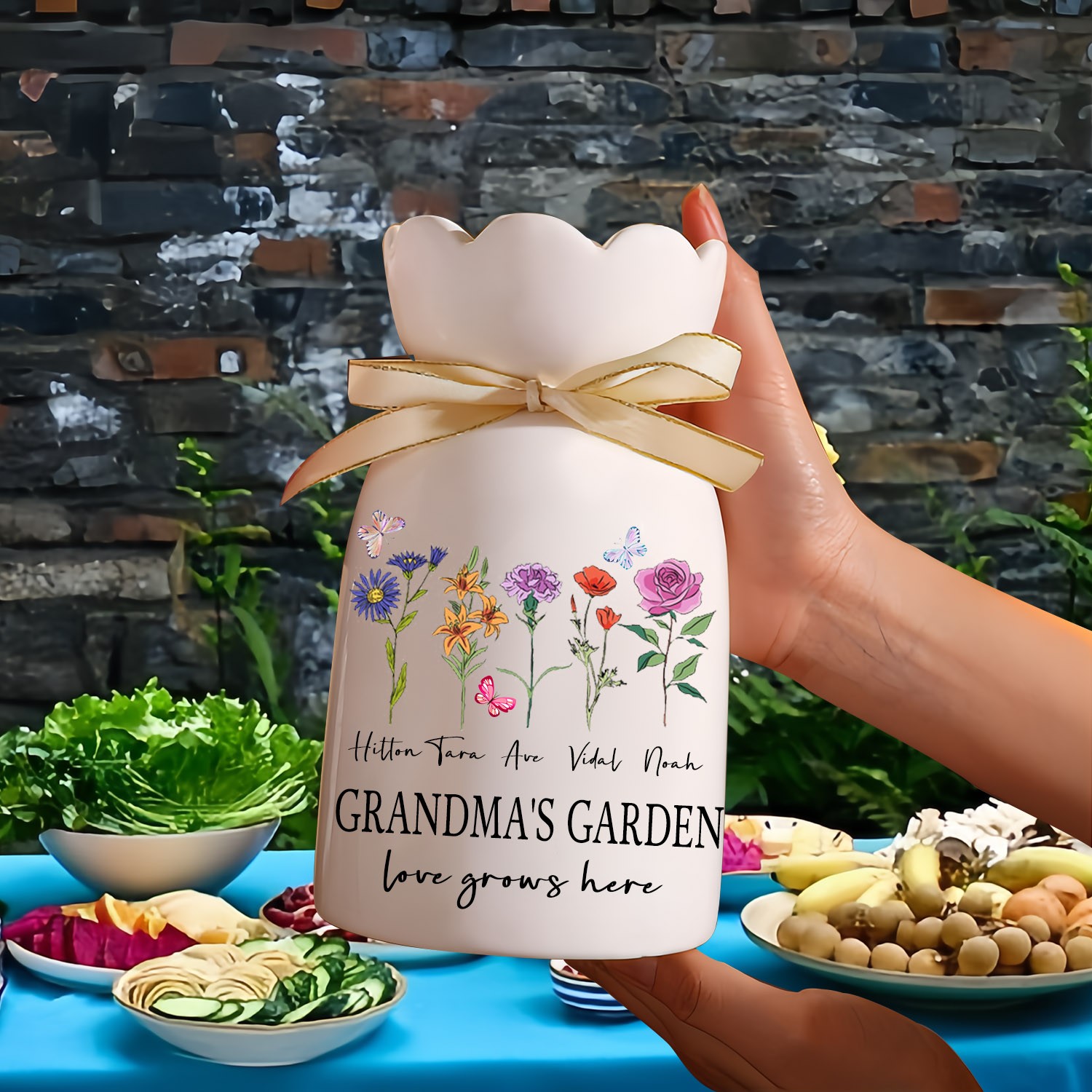 NEW ARRIVAL❗❗Personalized Grandma's Garden Birth Flower Vase with Grandkids Names Keepsake Gifts for Grandma Mom Mother's Day Gift