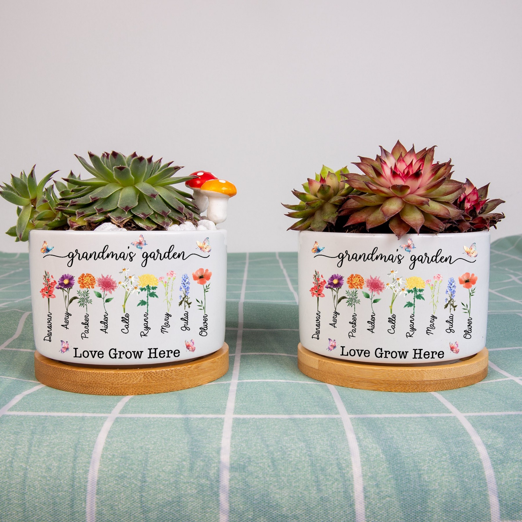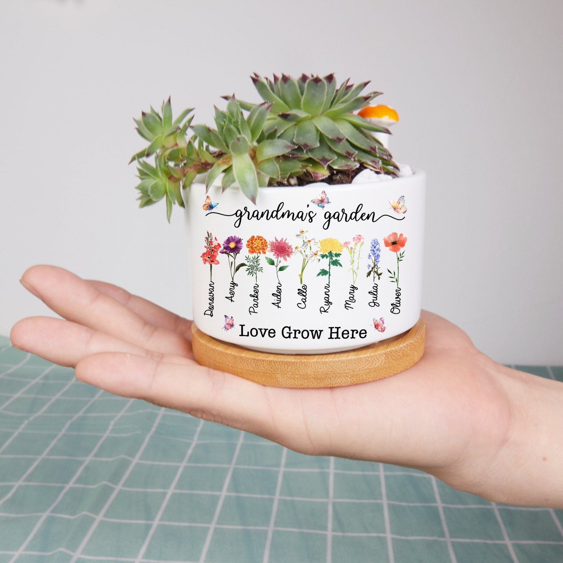 Personalized Grandma's Garden Outdoor Flower Pot With Grandkids Name and Birth Flower For Mother's Day