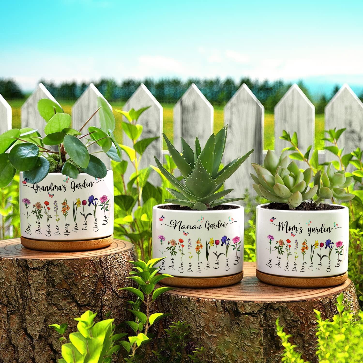 Personalized Grandma's Garden Outdoor Flower Pot With Grandkids Name and Birth Flower For Mother's Day