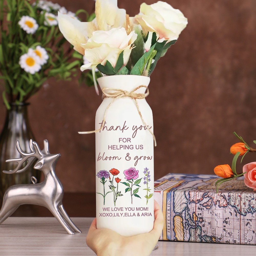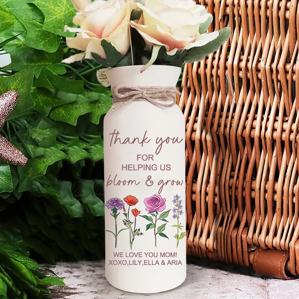 Personalized Grandma's Garden Outdoor Flower Vase With Grandkids Name and Birth Flower For Mother's Day