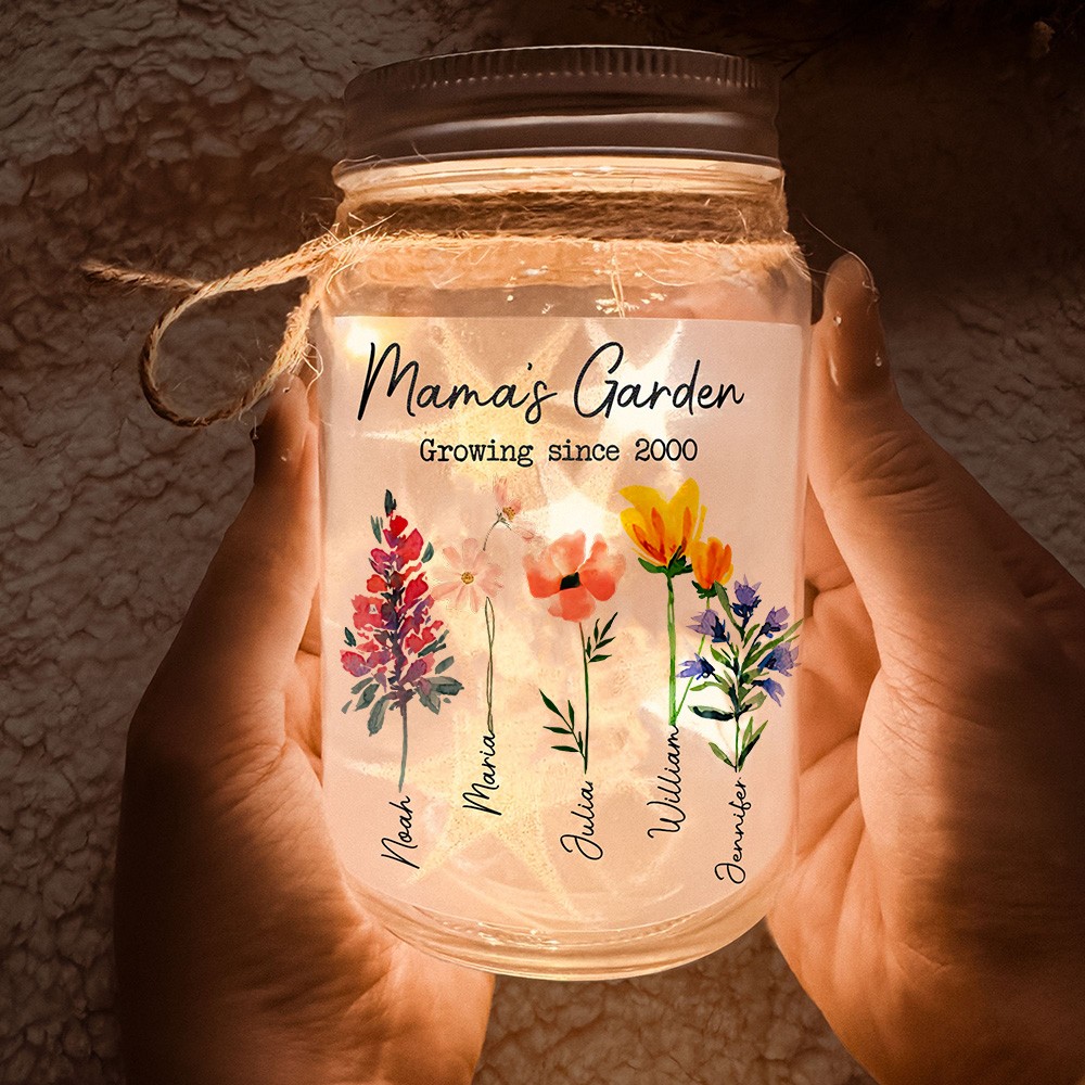 Personalized Mama's Garden Mason Jar Light Mother's Day Gift