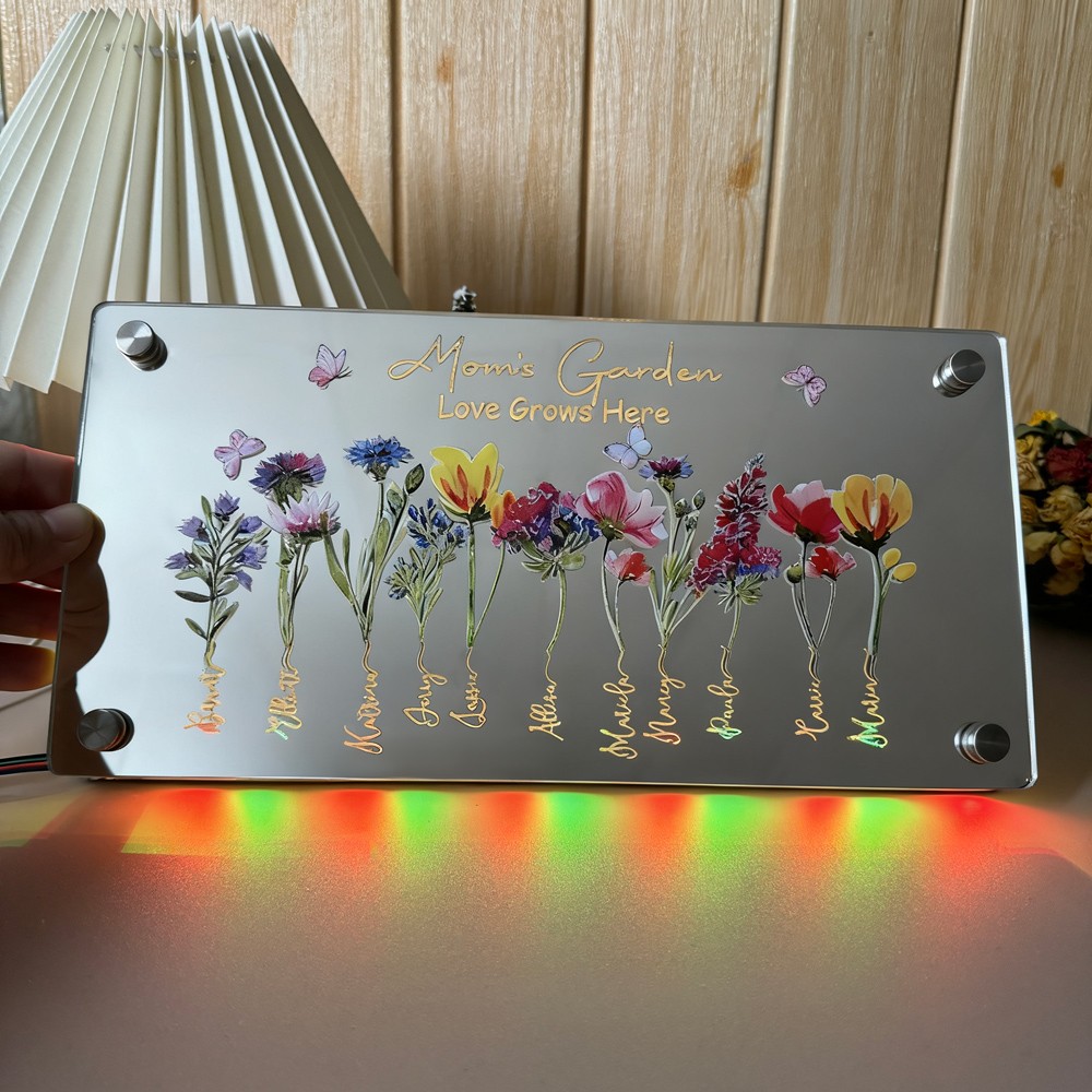 Personalized Mom's Birth Flower Mirror Night Light.
