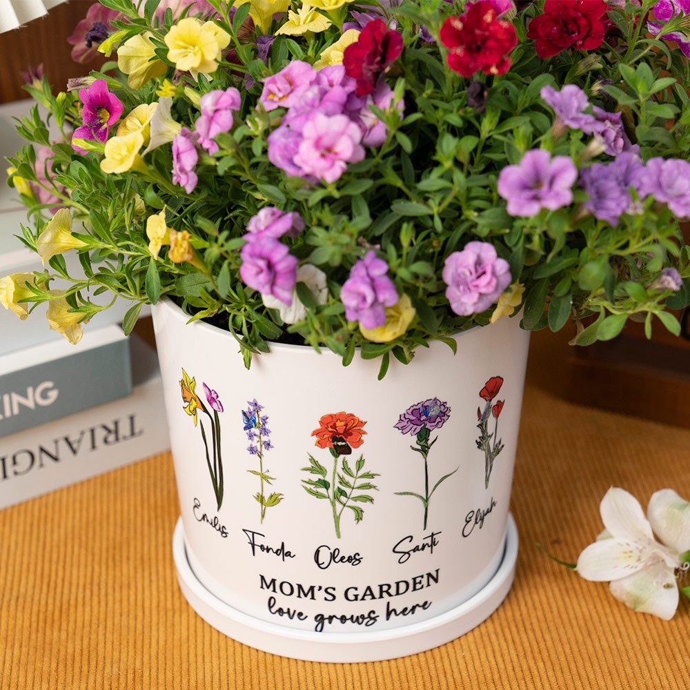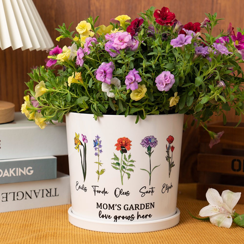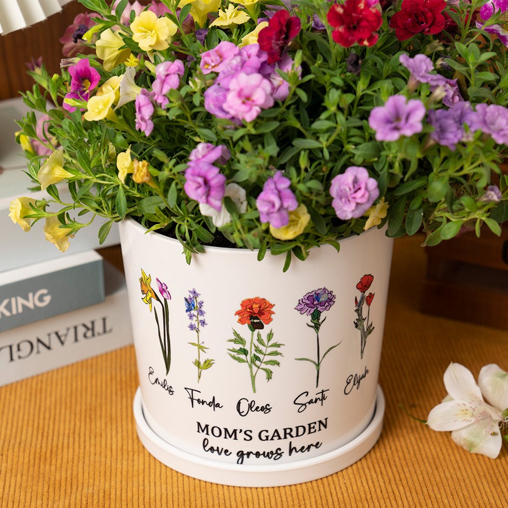 Personalized mom's Garden Birth Flower Pots with Kids Names Keepsake Gifts for Grandma Mom Mother's Day Gift