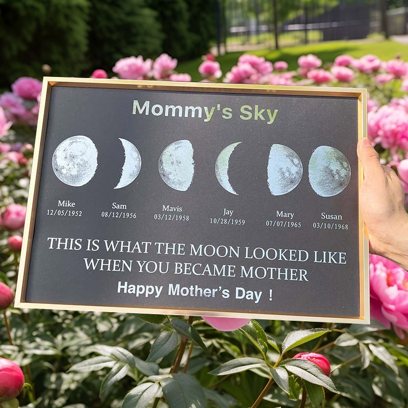 The "Personalized Moon Phase Frame" is a symbol of love and gratitude for your special mother. Each frame is handcrafted from high-quality wood, creating a unique and elegant gift.