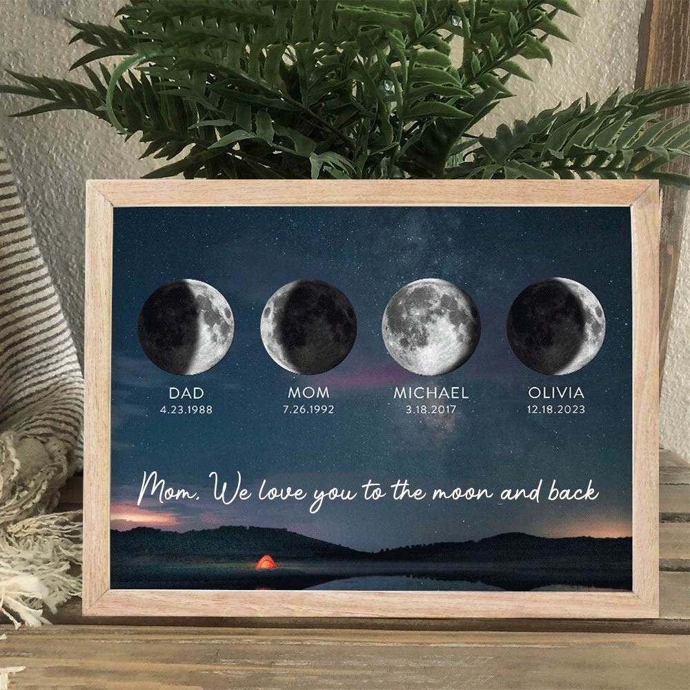 Personalized Moon Phase Wood Frame Mother's Day Gift