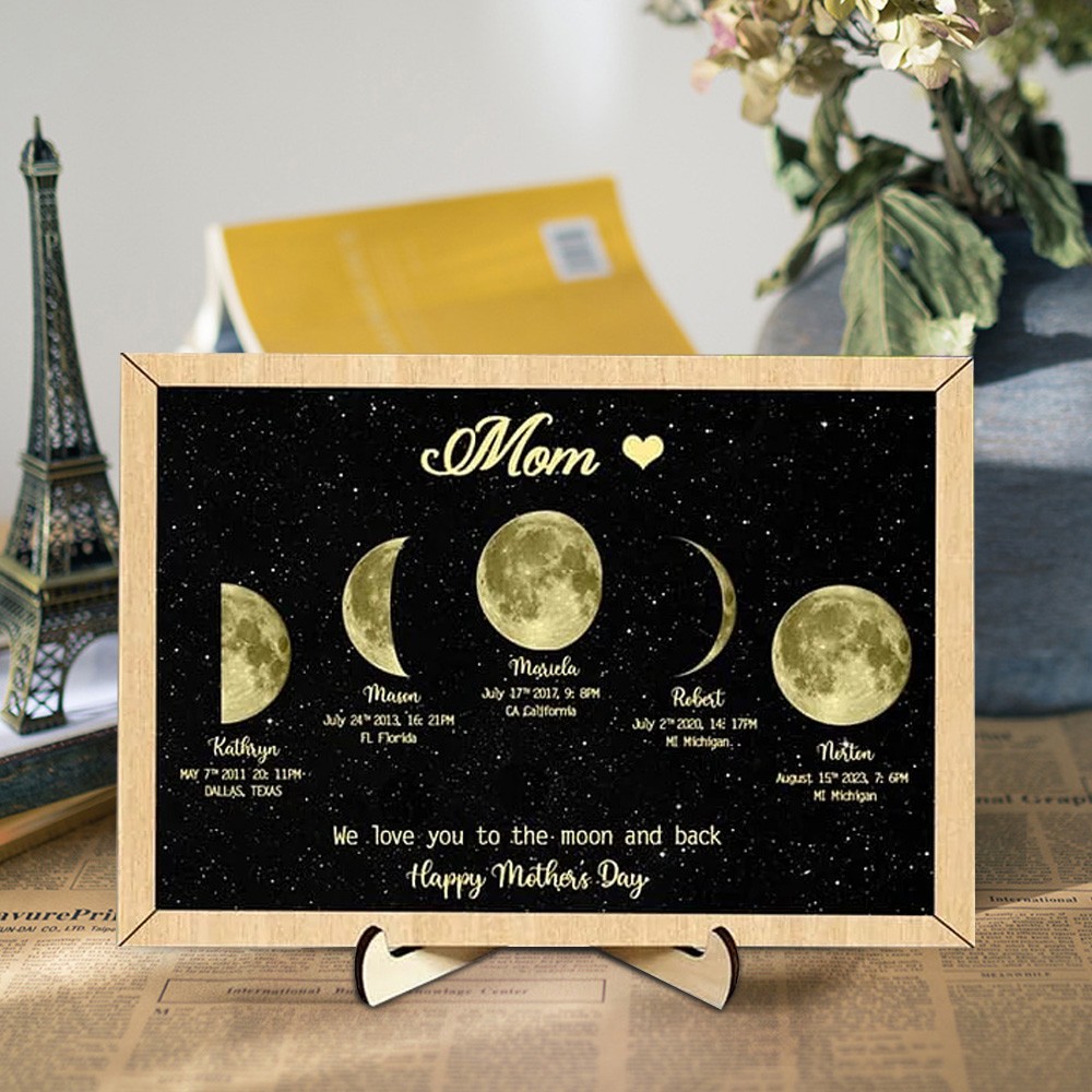 Personalized Moon Phase Wood Frame Mother's Day Gift