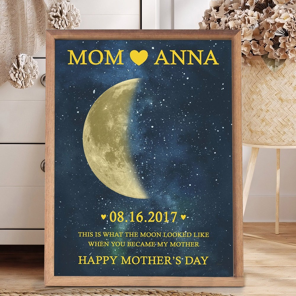 Personalized Moon Phase Wood Frame Mother's Day Gift