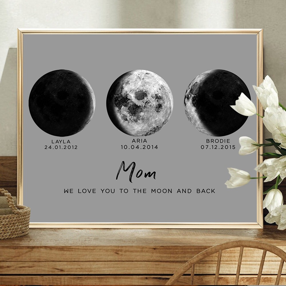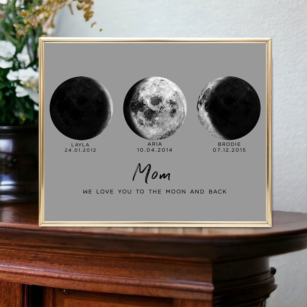 Personalized Moon Phase Wood Frame Mother's Day Gift