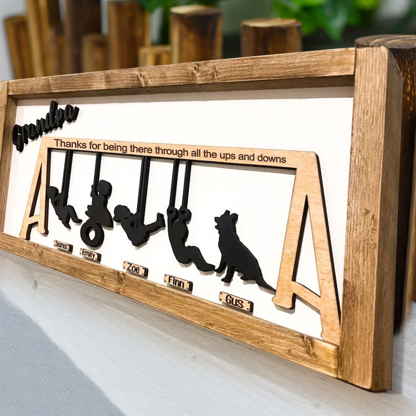 Capture the joy of childhood memories with our laser-engraved wooden sign featuring children on a swing set.