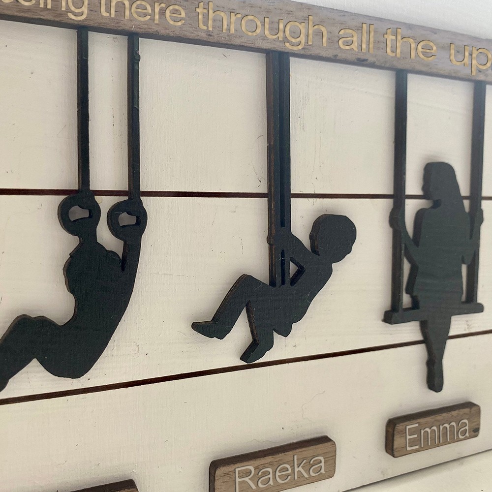 Capture the joy of childhood memories with our laser-engraved wooden sign featuring children on a swing set.