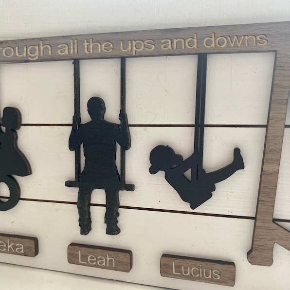 Capture the joy of childhood memories with our laser-engraved wooden sign featuring children on a swing set.