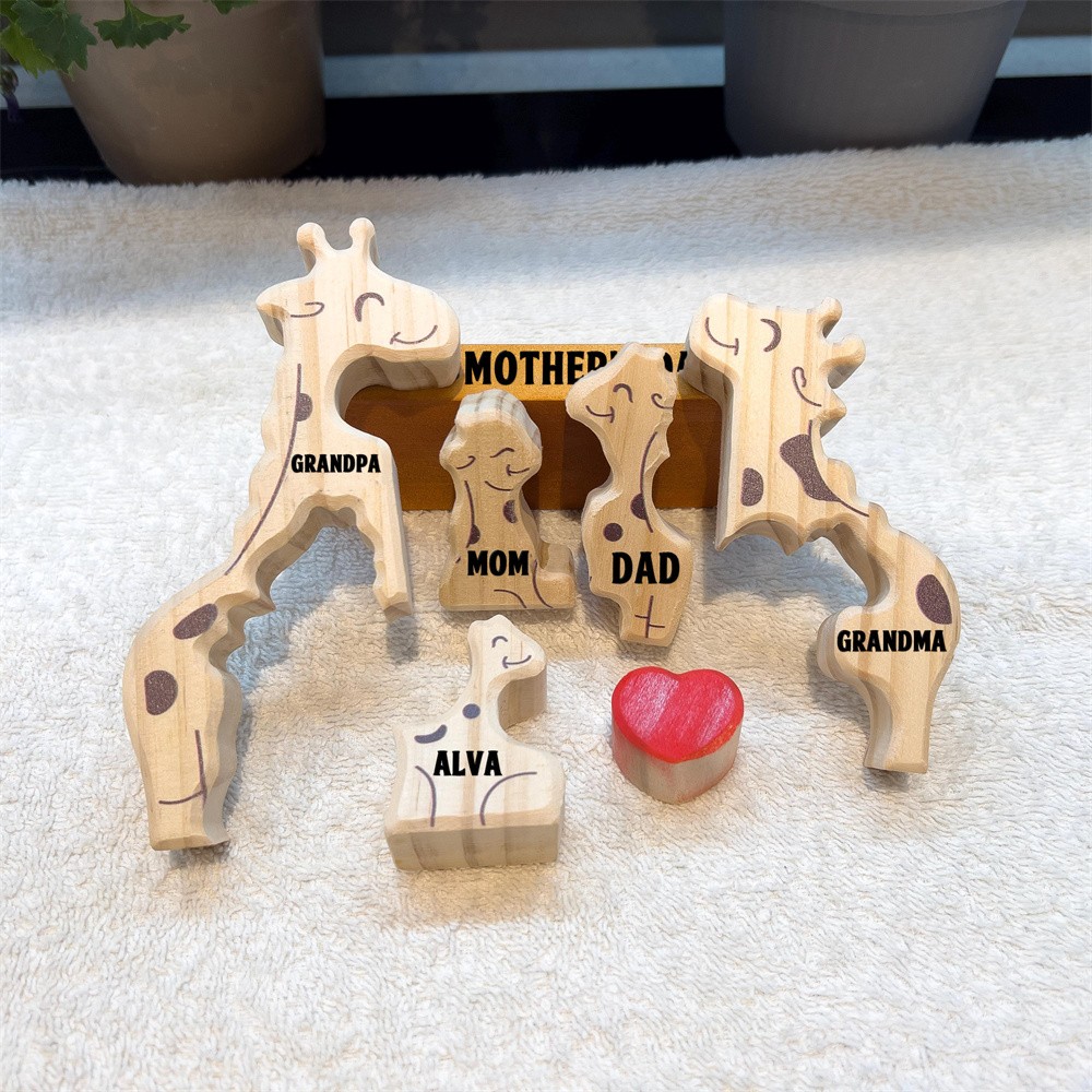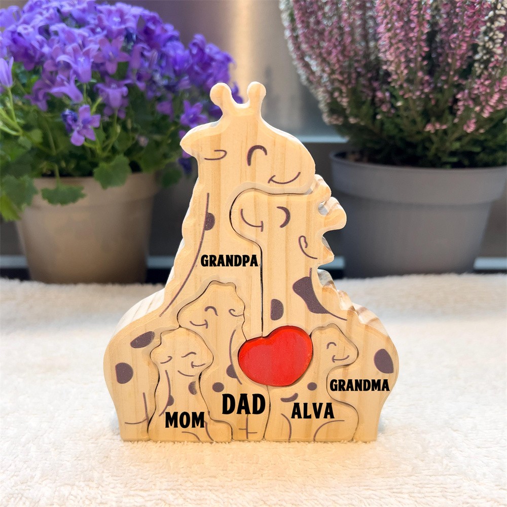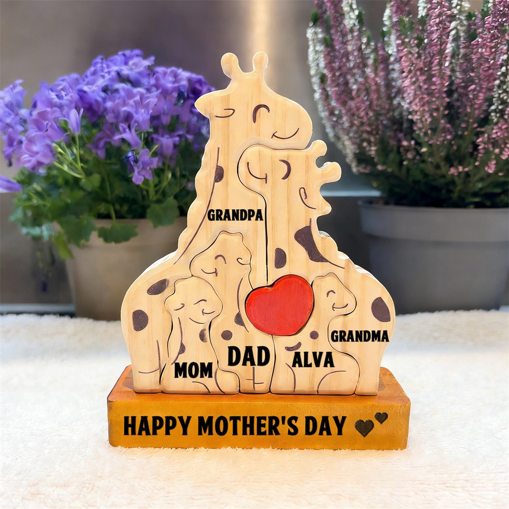 Personalized Wooden Giraffe Family Puzzle Family Keepsake Gifts Mother's Day Gift Ideas