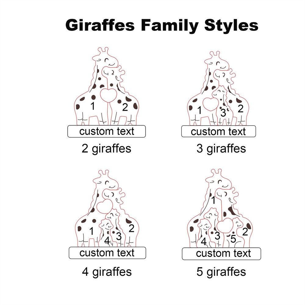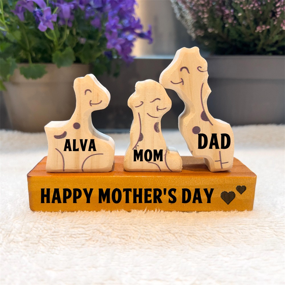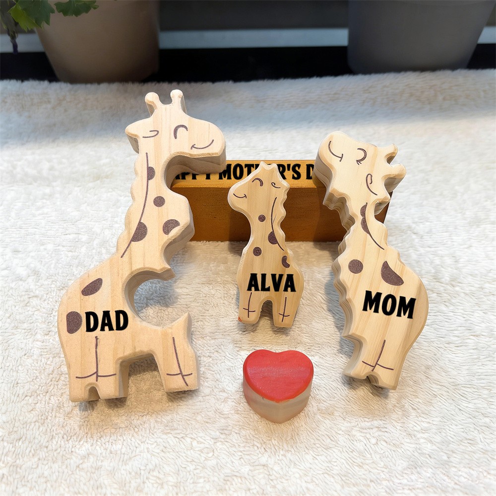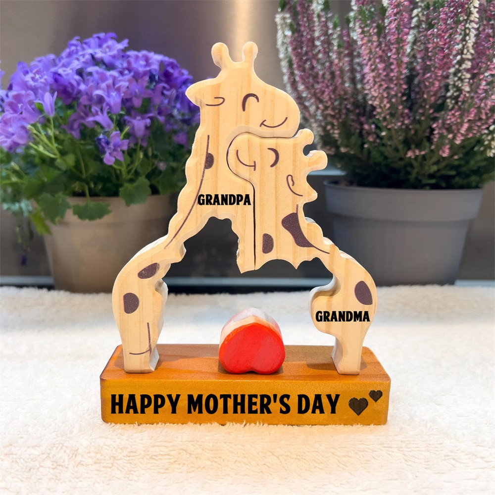 Personalized Wooden Giraffe Family Puzzle Family Keepsake Gifts Mother's Day Gift Ideas