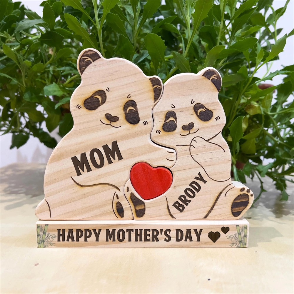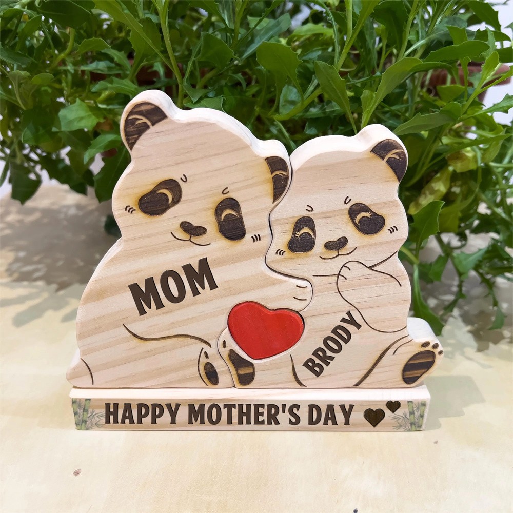 Personalized Wooden Panda Family Puzzle Family Keepsake Gifts Mother's Day Gift Ideas